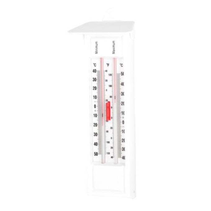 Este termómetro permite la medición independiente de temperaturas mínima y máxima alcanzadas en un determinado periodo de tiempo.