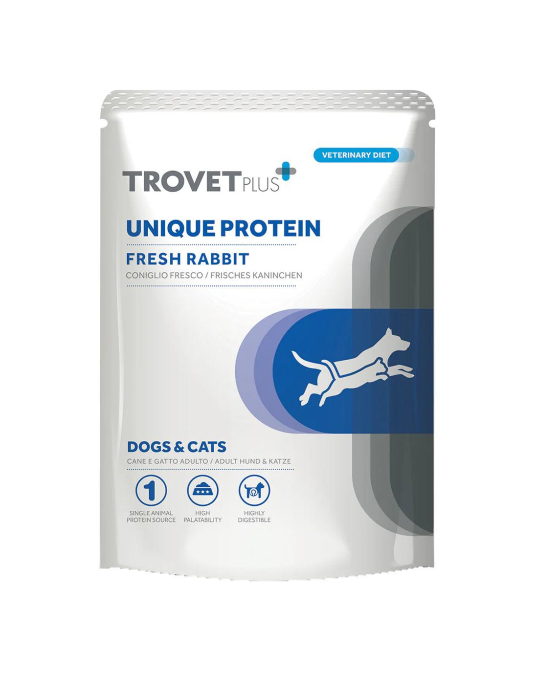 Con Unique Protein Conejo Fresco podrás preparar fácilmente una dieta de eliminación. Solo necesitarás añadir una fuente de carbohidratos (patata o arroz) y un suplemento alimenticio como TrovetPlus Balance para aportar las vitaminas y minerales necesarios.