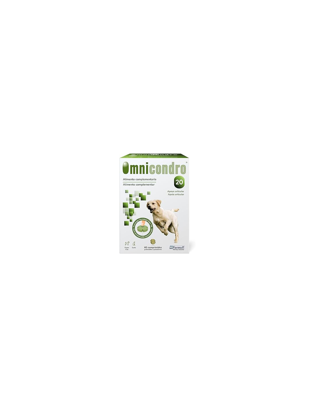 Omnicondro contiene la mayor concentración de nutrientes propios de las articulaciones y antiinflamatorios naturales. Omnicondro disminuye o quita por completo el dolor, mejorando la vida de los animales artrósicos. Previene en cachorros de razas grandes o en perros viejos esos procesos. Actuación rápida y potente.